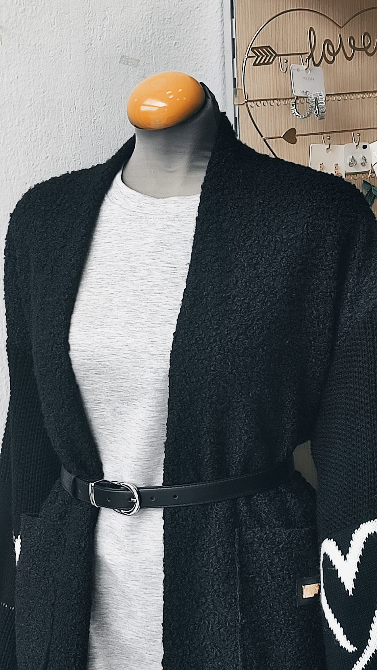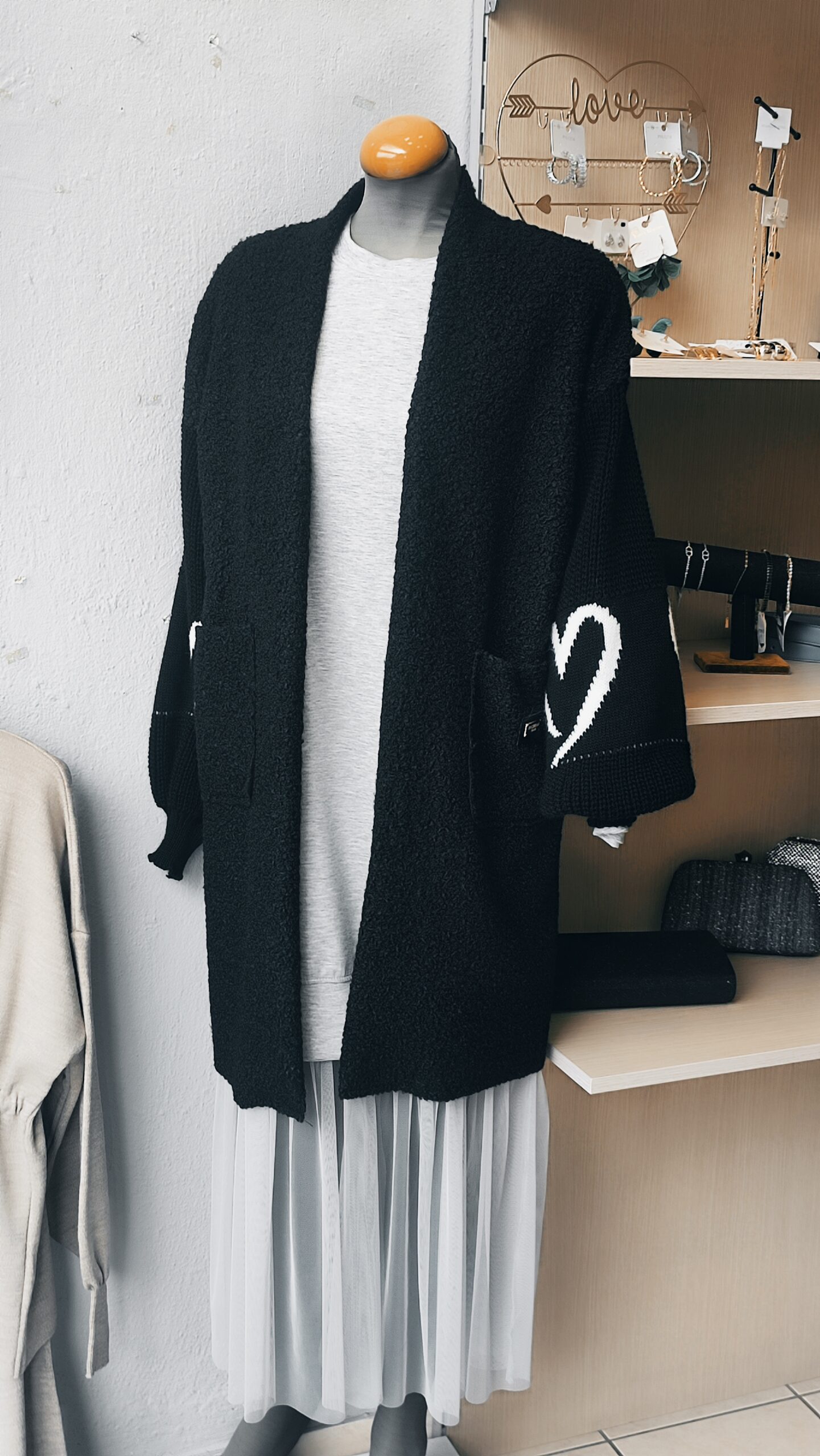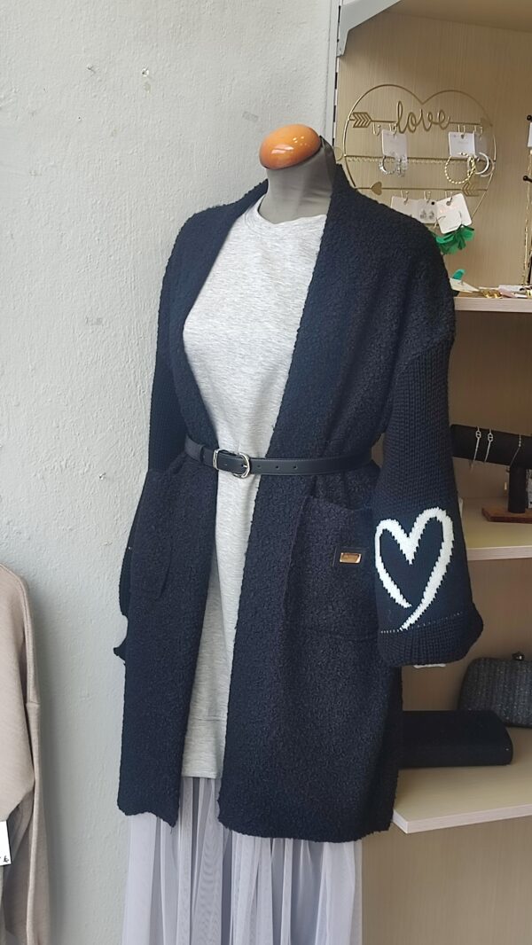 Ζακέτα one size μπουκλέ με τσέπες και πλεκτό μανίκι