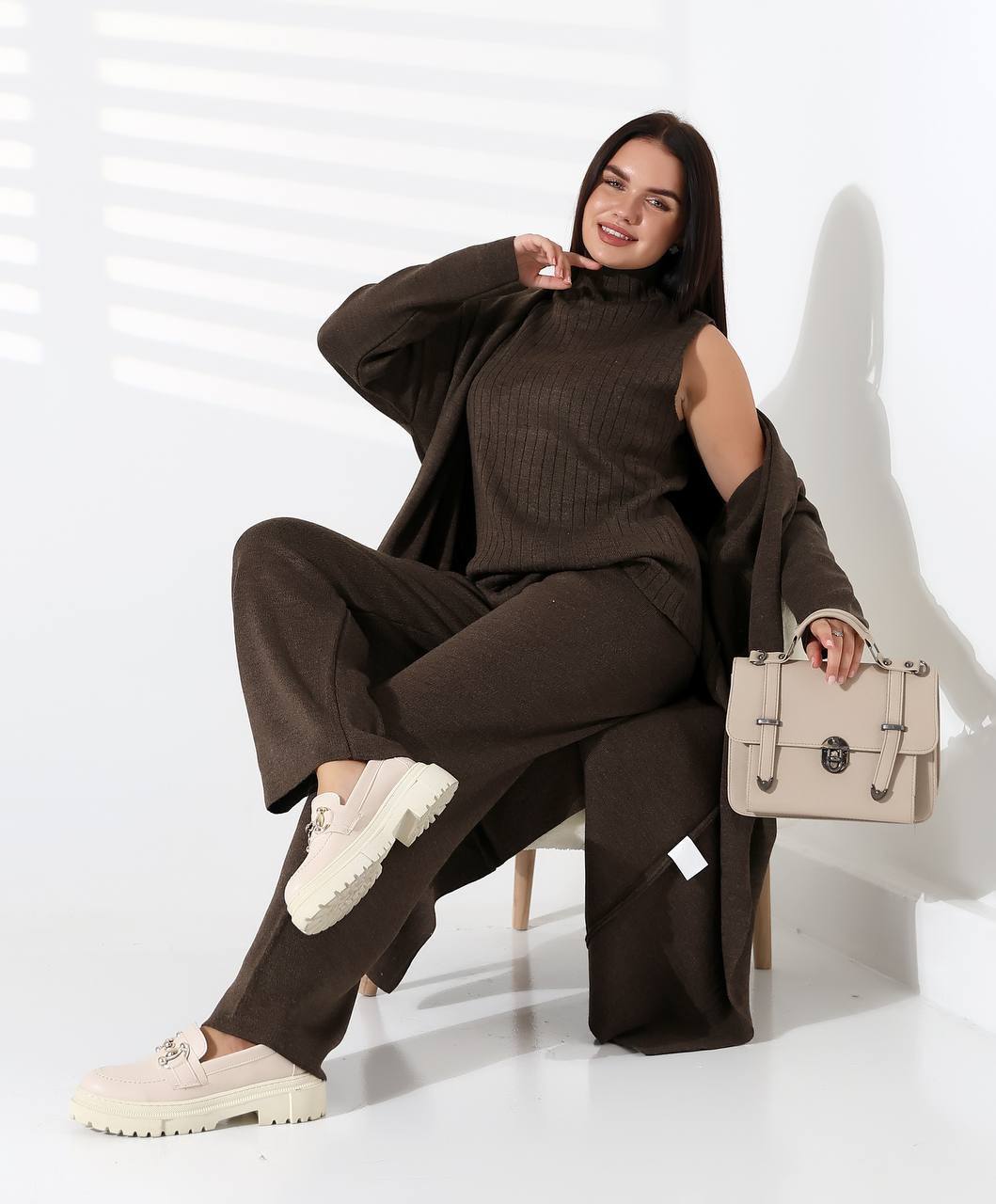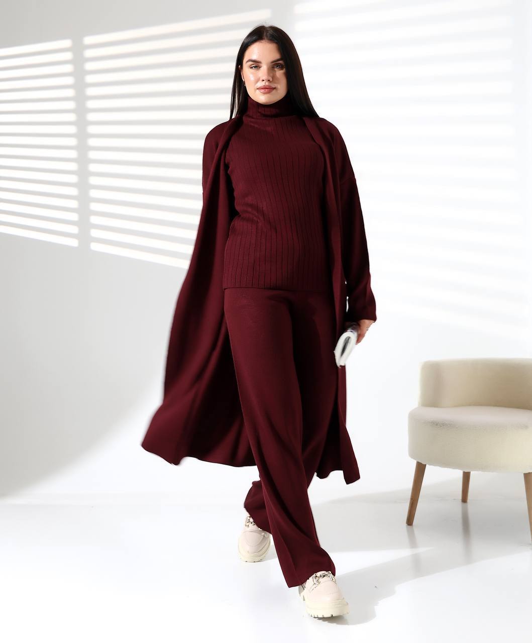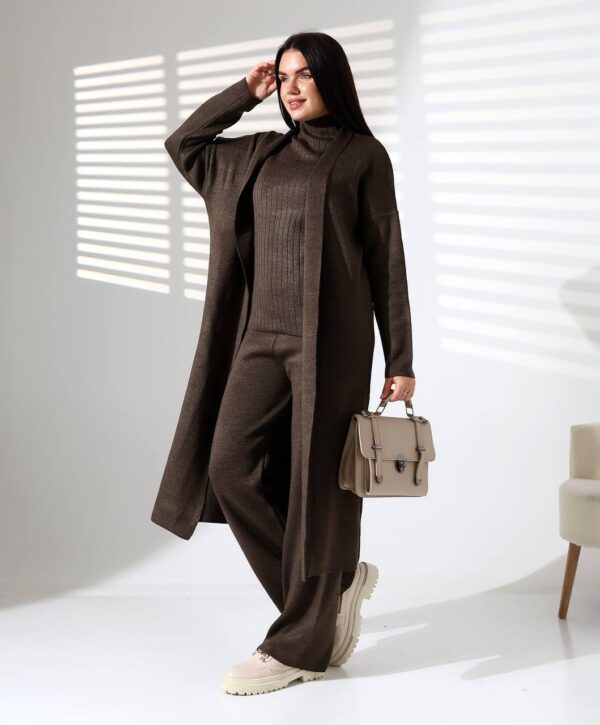 Ζακέτα μακριά Μπλούζα ζιβάγκο αμάνικη και Παντελόνι πλεκτό με λάστιχο στην μέση